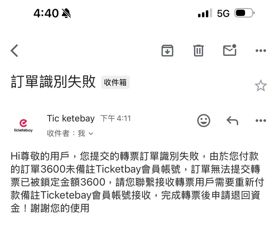 ticketebay.com或tixebay.com的郵件後綴進行聯繫。提供詳細的交易資訊,例如對話記錄和交易編號,以便客服快速處理您的問題。